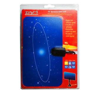 ANTENA DE INTERIOR EXTRA PLANA PARA TV ALTA DEFINICION HD UHF/VHF, CABLE DE 1.8 Mt. CON CONECTOR "F", RANGO DE FRECUENCIA 470-862 MHz, 75 Ohm DE IMPED