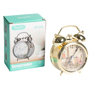 RELOJ ANALOGICO DESPERTADOR CON BOTON DE ILUMINACION, TIMBRE FUERTE CON DURACION DE 5 MINUTOS, PERILLAS GIRATORIAS, MEDIDAS: 12.5 X 9 X 4.7cm (ZB-029)