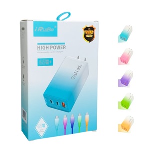 CARGADOR DE TRES PUERTOS, UNO USB y DOS TIPO "C", ENTRADA CON CLAVIJA PARA 100 - 240 V, SALIDA USB: 5V - 2.4A, SALIDA TIPO "C": 5V - 3.5A, 9V - 2A, 12