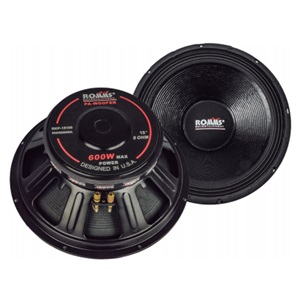 BOCINA 15" 8 Ohm, 600 WATT MAXIMO, 100 ONZAS, 98dB, FRECUENCIA 30-3500 Hz, SUSPENSION DE TELA, MARCA ROMMS, UNA PIEZA (RKP-15100)