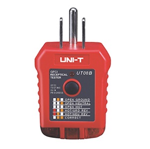 PROBADOR DE TOMACORRIENTE CORRIENTE ALTERNA (CA), VERIFICADOR DE POLARIDAD PARA CLAVIJA DE 3 LINEAS, 110V ~ 125V CA, 50 ~ 60 Hz, 0.3 W, 6 ~ 9 mA, MED