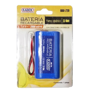 BATERIA RECARGABLE TIPO "18650" DE LI-ION, DE 3.7 Vdc, 2000mA, TAMAÑO 1.8x6.5cm, PESO 50gr, UNA PIEZA DE BLISTER CON 5 (18650-2)