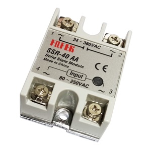 RELEVADOR ESTADO SOLIDO SSR-40 AA, MONOFASICO DE AC a AC, CORRIENTE DE CARGA MAXIMA 40 A, VOLTAJE DE ENTRADA: 80-250 VAC, VOLTAJE DE CONMUTACION: 24-3